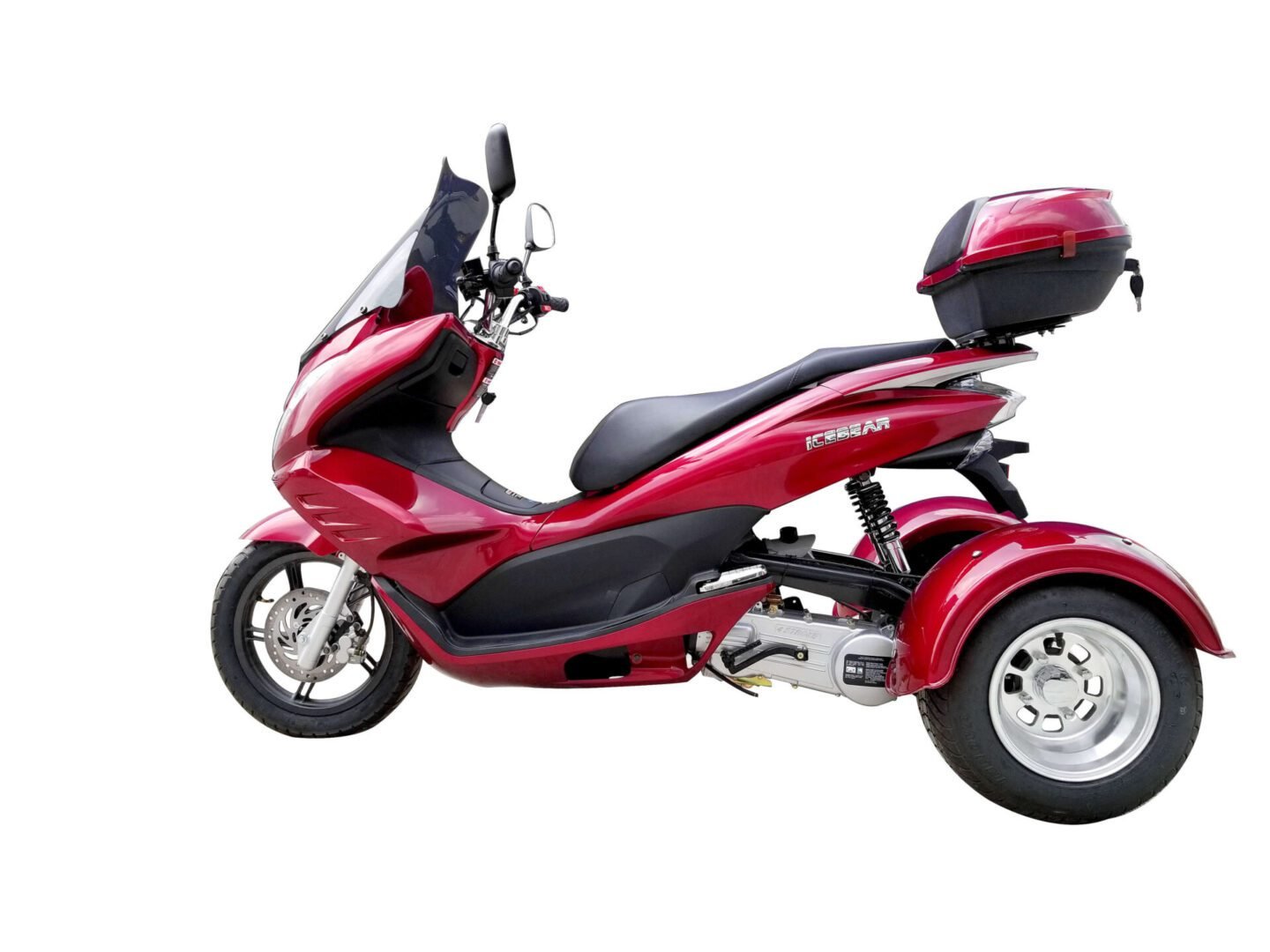 For safety, the Q6 150 features both front and rear disc brakes, offering dependable stopping power. It rides on sturdy 14-inch aluminum wheels at the front and 10-inch aluminum wheels at the rear, providing good stability and maneuverability. The Icebear Q6 150 is an excellent choice for those seeking a stable and user-friendly trike experience.