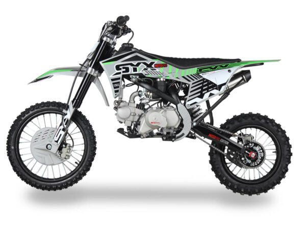 The Icebear SYX PRO V2-125 Pit Bike is engineered for off-road enthusiasts who crave power and precision. Equipped with a robust 125cc HS engine and a 4-speed manual transmission, this pit bike delivers dynamic performance and control. Its 17″ front and 14″ rear wheels, coupled with hydraulic disc brakes at both ends, ensure excellent handling and stopping power on diverse terrains. The inverted front forks and oil-cooled engine further enhance its durability and ride comfort, making it ideal for rugged trails and challenging tracks.