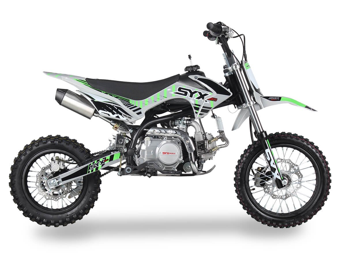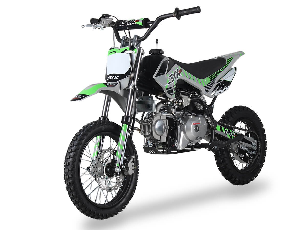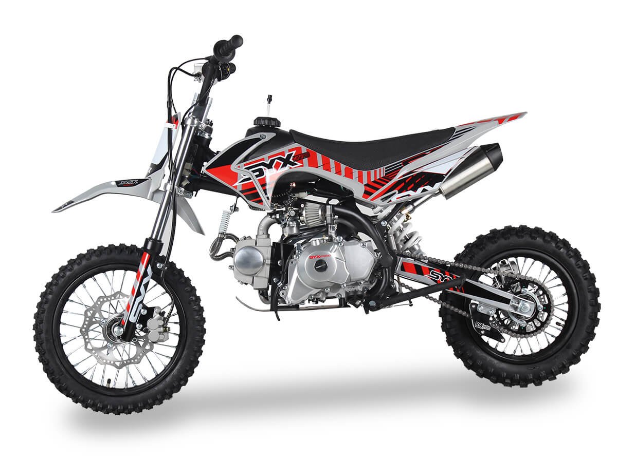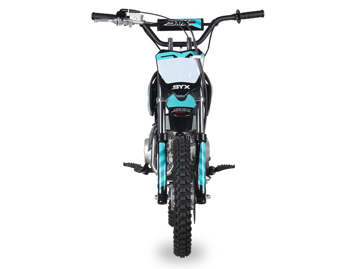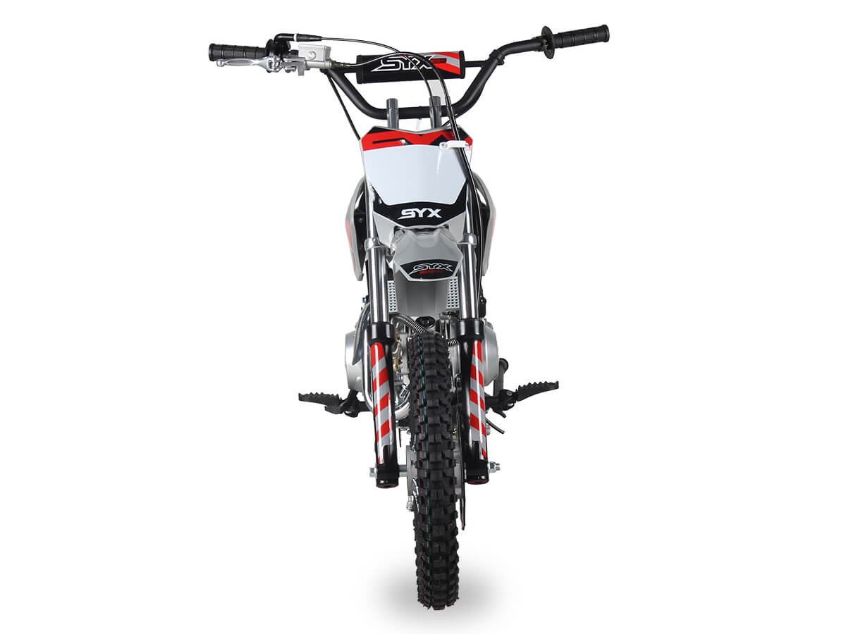 The inverted front forks and oil-cooled engine contribute to enhanced handling and durability, allowing the SYX PRO V2-140 to tackle rough trails with ease. With both kick and electric start options, starting your ride is quick and convenient, whether you’re on the go or preparing for a day of riding. This pit bike delivers a thrilling and dependable off-road experience, making it an ideal choice for both trail enthusiasts and track racers.