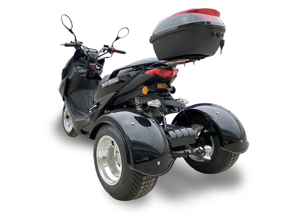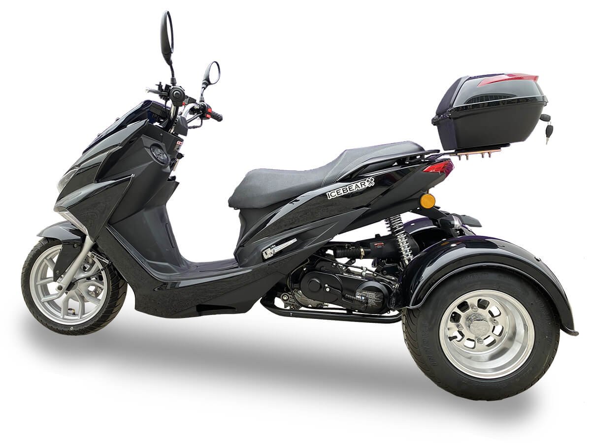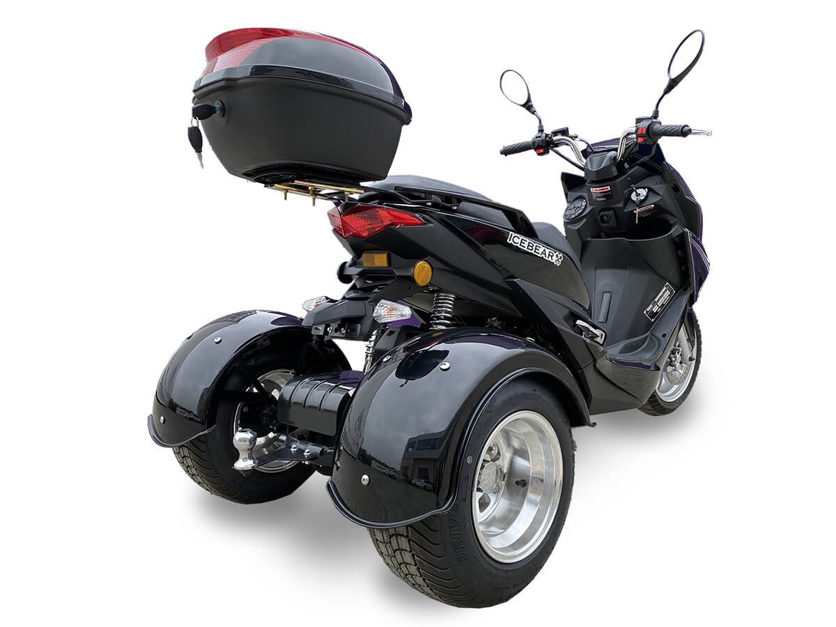The Icebear Trifecta 50 (PST50-2) is a versatile and feature-packed trike, perfect for those seeking a reliable and stylish ride. Powered by a 50cc engine, this trike delivers efficient performance, making it ideal for daily commutes or leisurely rides. It’s equipped with front and rear disc brakes, ensuring precise and dependable stopping power. The aluminum wheels, with a 13” front and 10” rear, provide a smooth and stable ride, enhancing your overall driving experience.